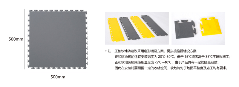軟質(zhì)絕緣地板能將每個(gè)獨(dú)立的地板快速拼裝成整體地面,專(zhuān)利型鎖扣結(jié)構(gòu)連接能力更強(qiáng),可承受叉車(chē)的來(lái)回碾壓。施工過(guò)程中無(wú)需膠黏劑等材質(zhì),具有施工簡(jiǎn)單快速、色彩絢麗、美觀大方、可移動(dòng)性強(qiáng)、可重復(fù)使用等特點(diǎn)。